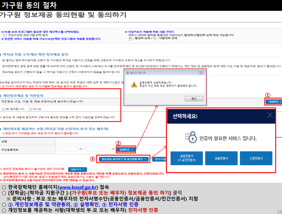 또한 장학금 신청시 가구원 동의가 필요하니, 장학금 신청시 같이 사는 가족들의 휴대폰으로 동의를 받아야합니다.