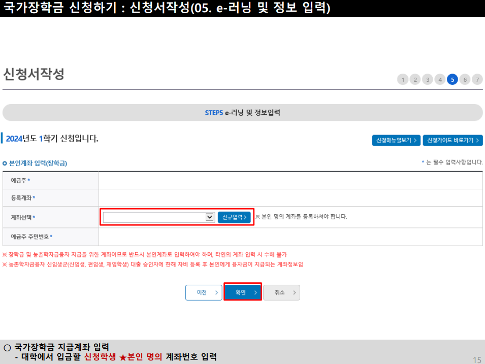e 러닝 까지 이수를 완료하고나면 자신의 계좌번호와 정보를 입력하고 확인합니다.