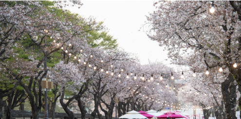 밤에는 야간 벚꽃구경 또한 가능하고 불꽃놀이 또한 진행합니다.