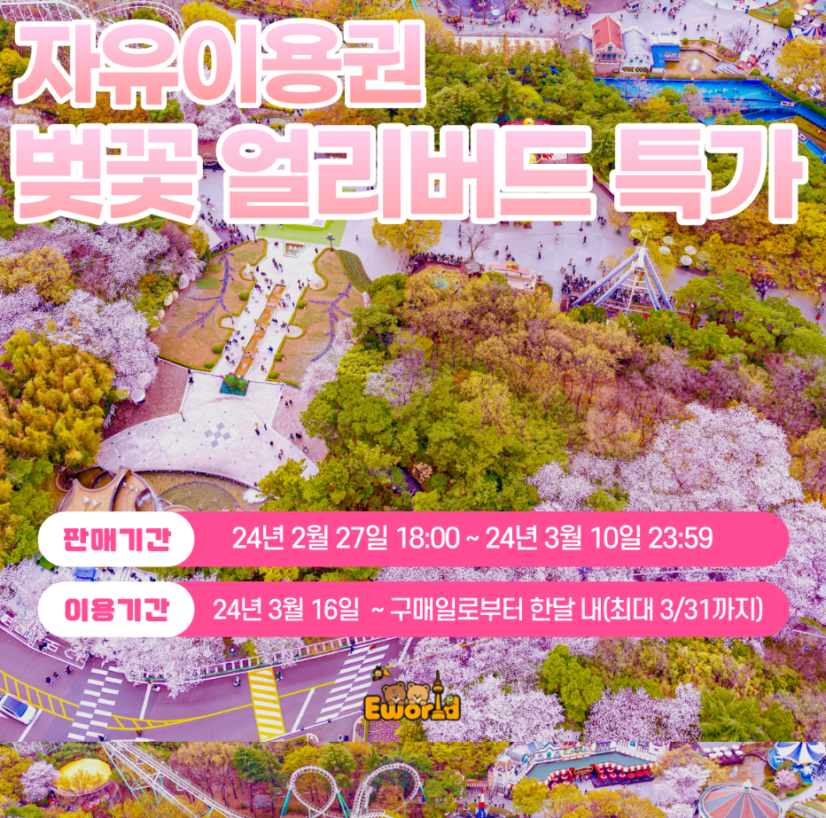 이월드는 대구의 유명한 놀이공원입니다. 이번 이월드에서 벚꽃맞이 축제를 엽니다.