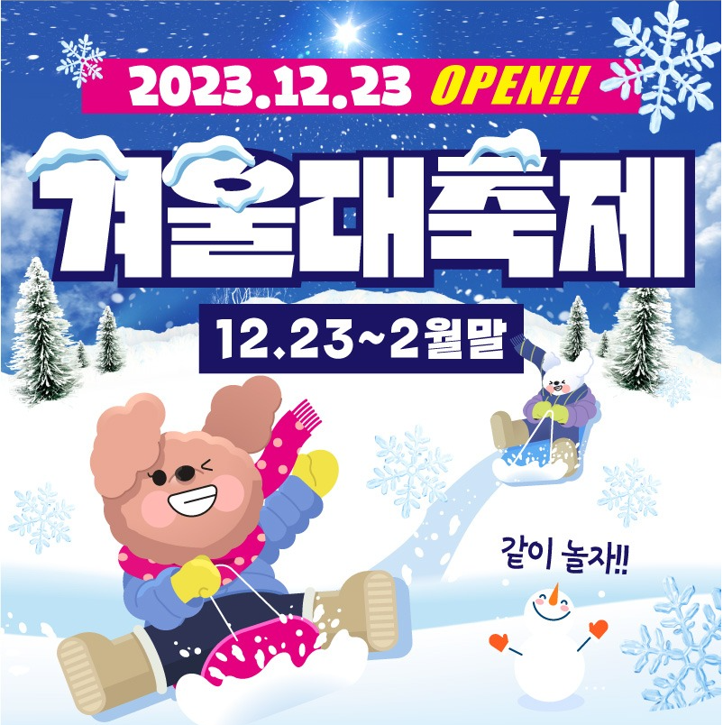 겨울 대축제는 2023년 12월 23일 12월 23일부터 2024년 2월 말까지 운영합니다.(주말 운영)